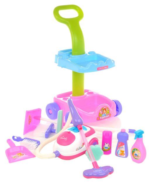 Zestaw Małej Sprzątaczki - odkurzacz, wózek mop, zmiotka, płyny
