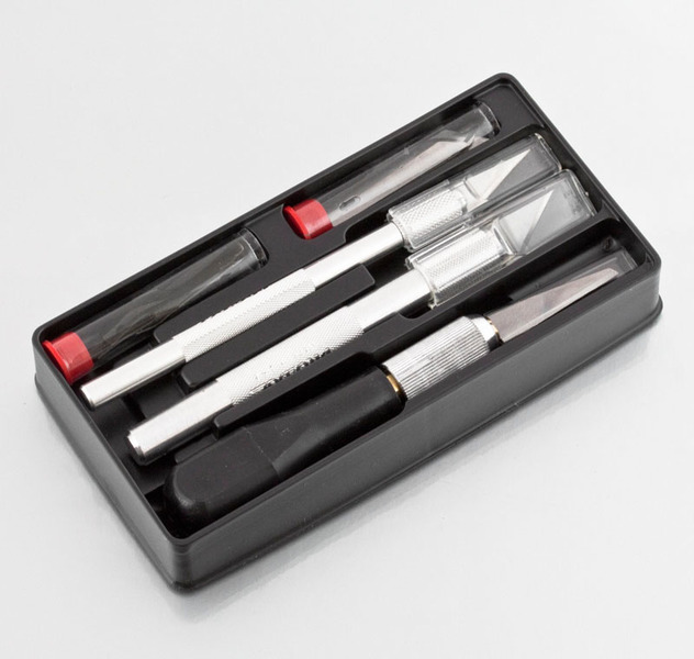Netto: 68,29 PLNZestaw składający się z 2 precyzyjnych noży oraz ostrzy i dłut zamiennych. ych noży oraz 10 różnych ostrzy zamiennych.