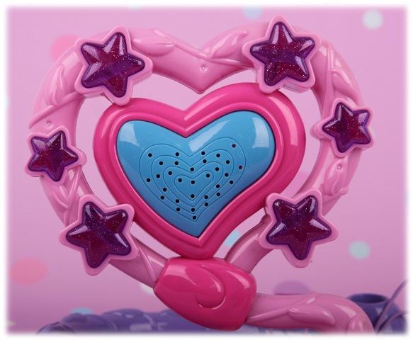 - głośnik w kształcie serduszka z migoczącymi światełkami i pokrętłem regulacji głośności (pokrętło to jednocześnie służy do włączania i wyłączania zestawu).