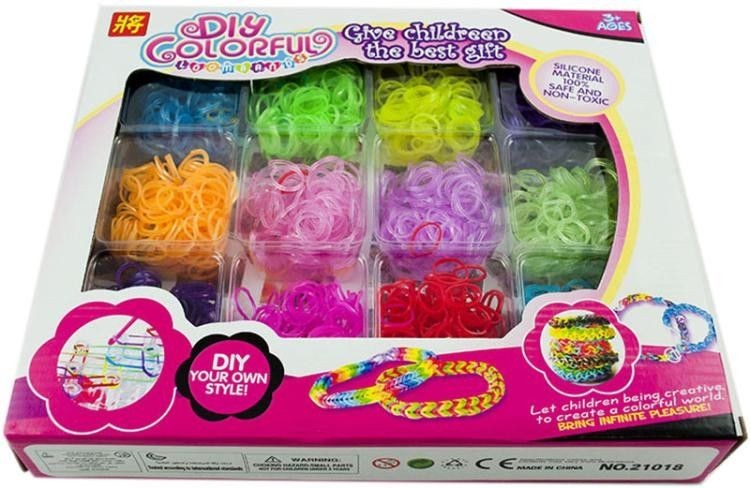 Netto: 20,28 PLNZestaw zawiera 2400 różnokolorowych gumek do robienia bransoletek, ułożonych kolorami w oddzielnych przegródkach (12 kolorów po 200 gumek z każdego). Gumeczki są bezlateksowe i nietoksyczne.